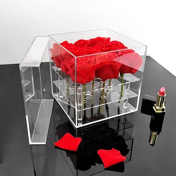 Caja de flores de acrílico transparente de 9 ranuras desmontable personalizada al por mayor con caja de regalo de Rosa preservada perforada para jarrón de decoración de boda