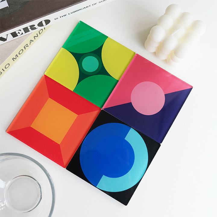 Venta al por mayor de posavasos creativos de acrílico transparente de 5mm respetuosos con el medio ambiente, manteles individuales multicolores para el hogar, mesa, cocina, decoración, uso de Bar